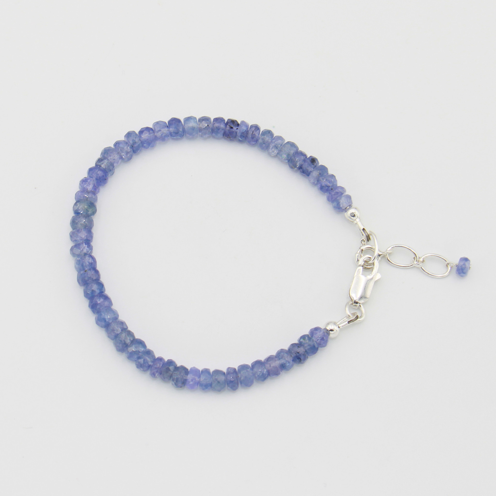 Tanzanite (Tanzania) faceted beads sparkle in this sterling silver bracelet. Adjustable closure