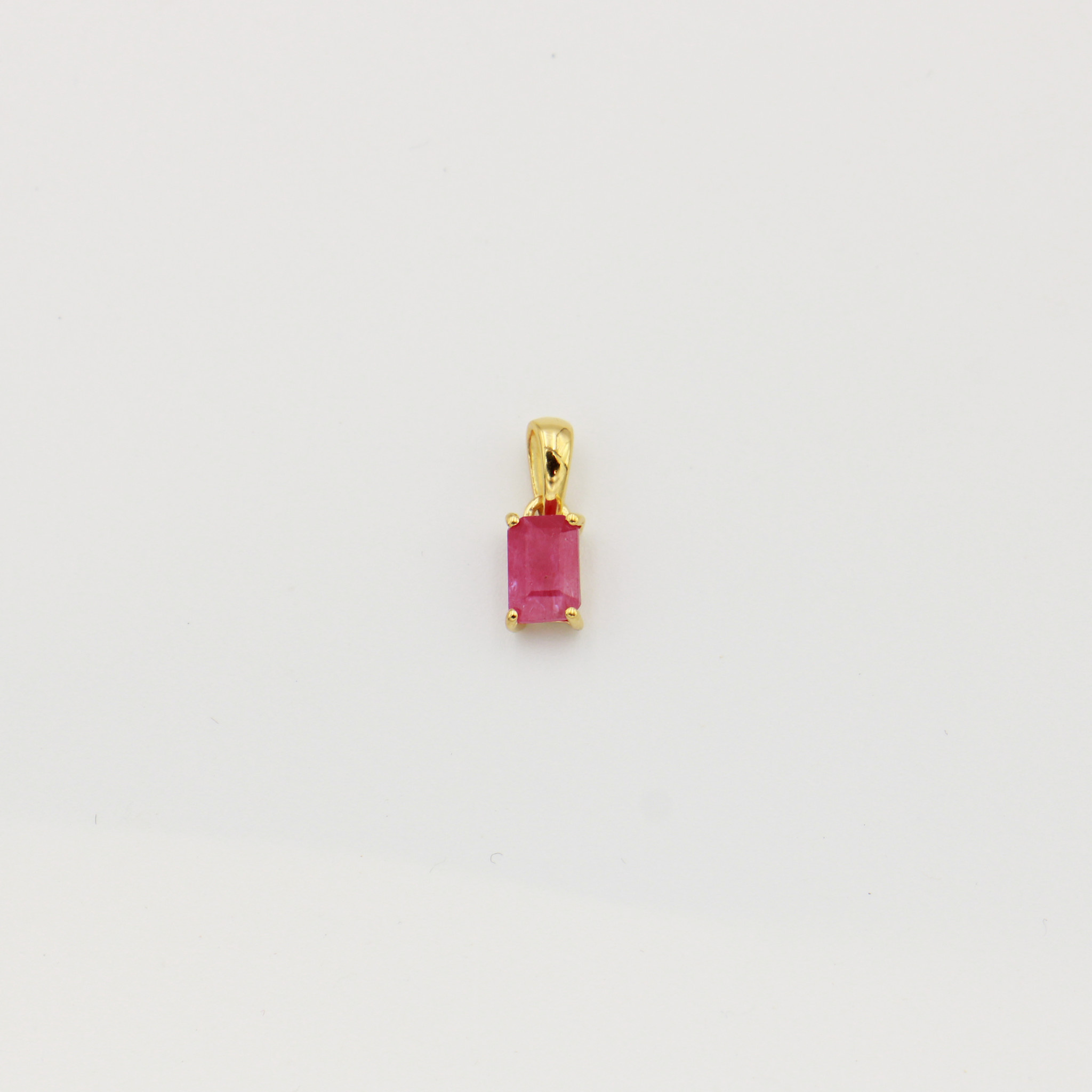 Dainty and perfect with our dainty gold cable chain in either 16 or 18 inch. Gold plated sterling silver pendant featuring an emerald cut Ruby.