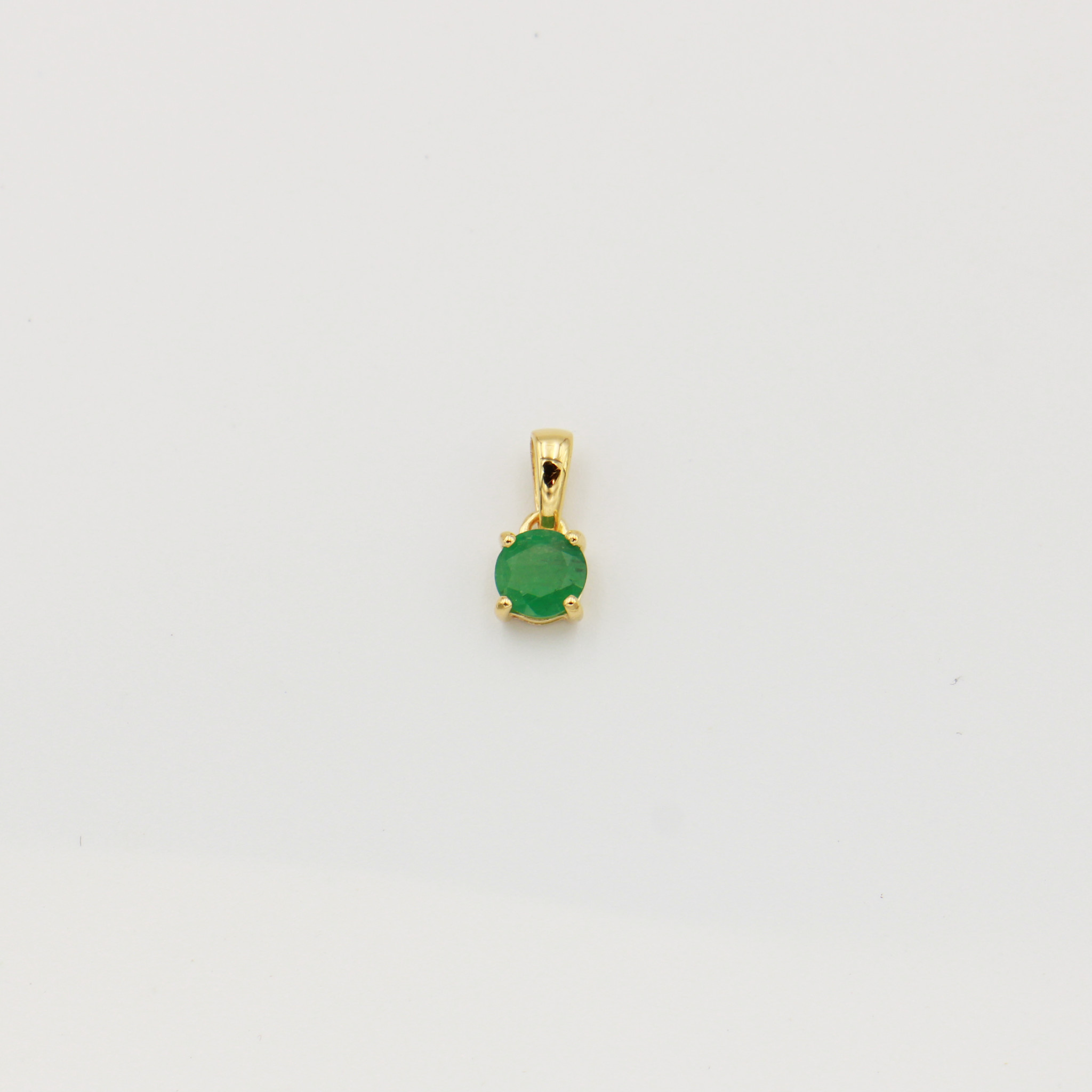 Tiny and "charming" little pendant! A tiny round faceted Emerald prong set in gold plated sterling silver