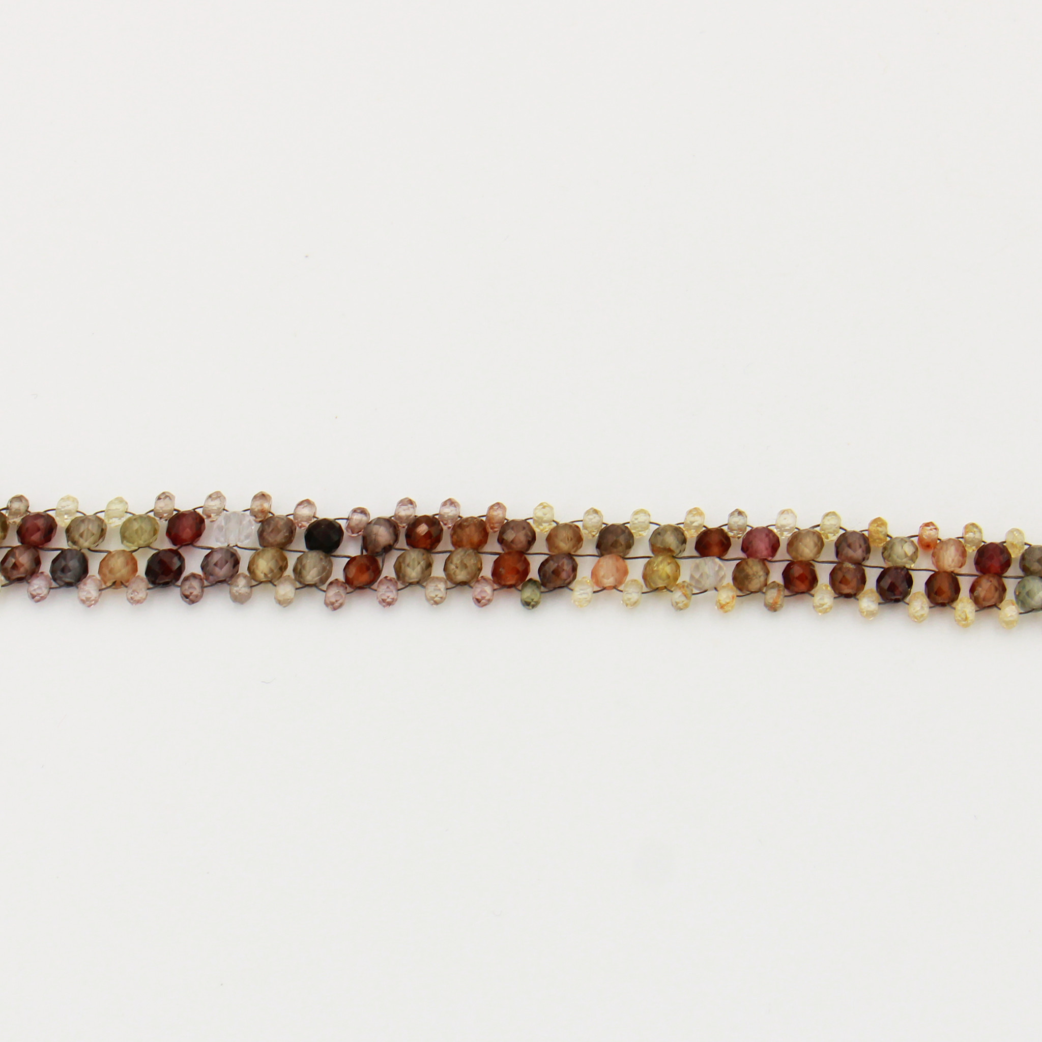 This unique and beautiful bracelet blends the best of boho and fine jewelry. Tiny Tundra Sapphires and Zircon with sparkling facets, beaded in a beautiful design. Finished with a sturdy rustic finish brass magnet closure.